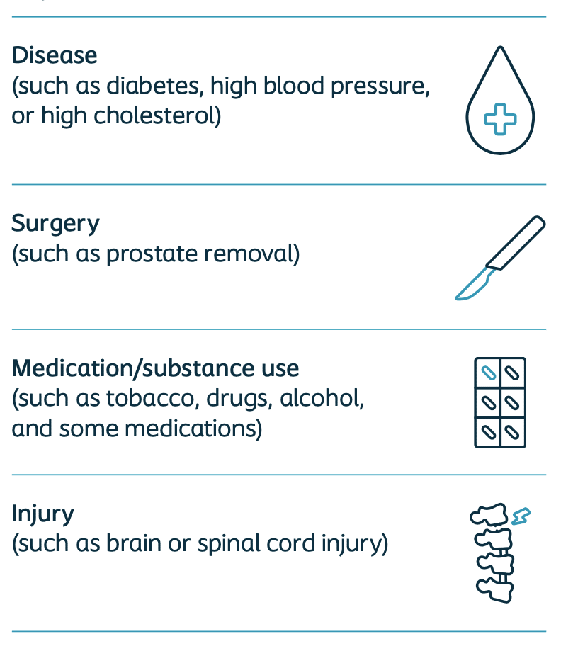 It can be difficult to talk about Erectile Dysfunction (ED), but ED is more common than you think. There’s a good chance that the guy sitting next to you might have ED, or that the woman across the room is wondering how to help her partner find answers. Understand the causes of ED in this article.